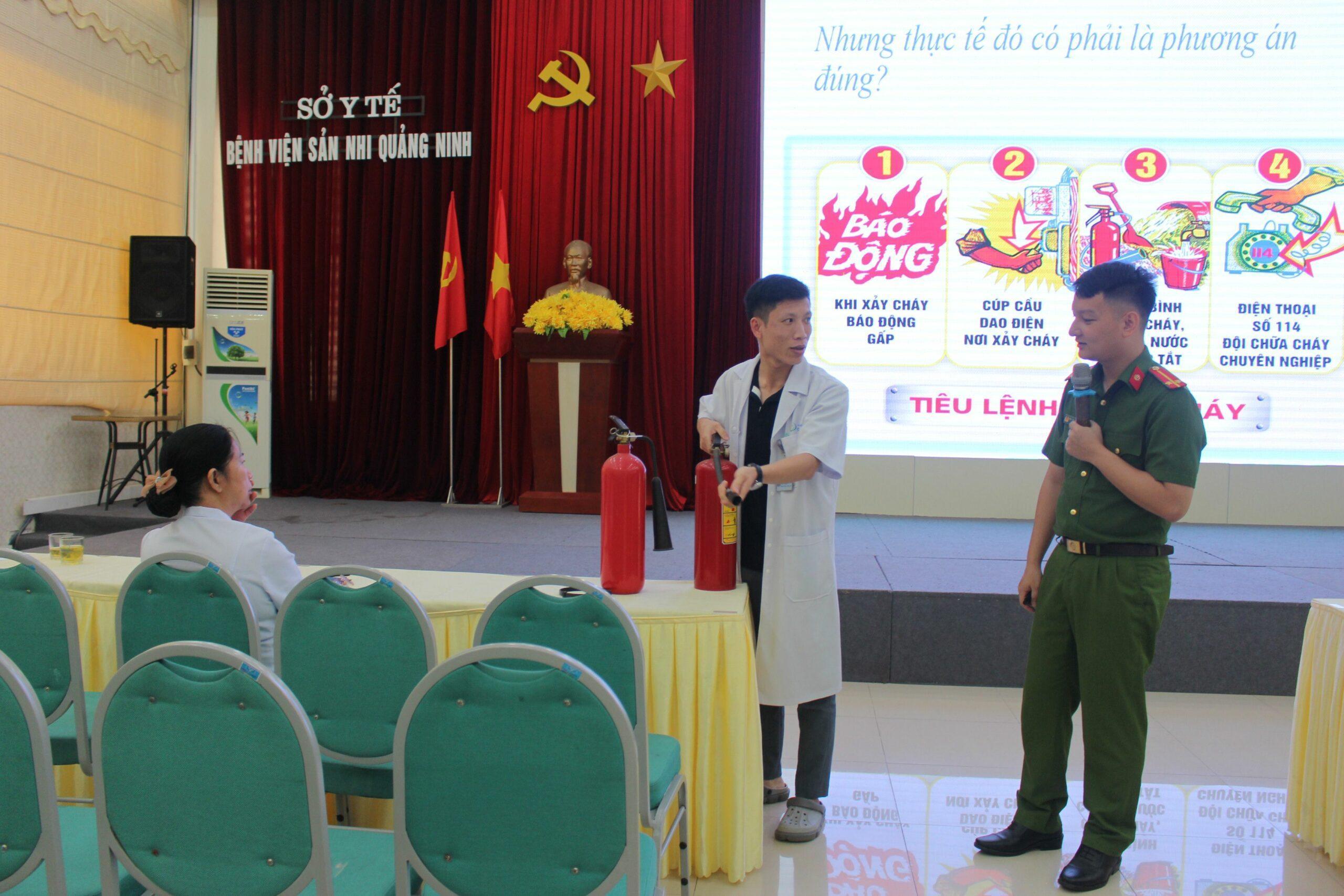 Tổ Chức Huấn Luyện Thực Hành Phòng Cháy Chữa Cháy Cho Cán Bộ, Người Lao Động Tại Bệnh Viện Sản Nhi Quảng Ninh