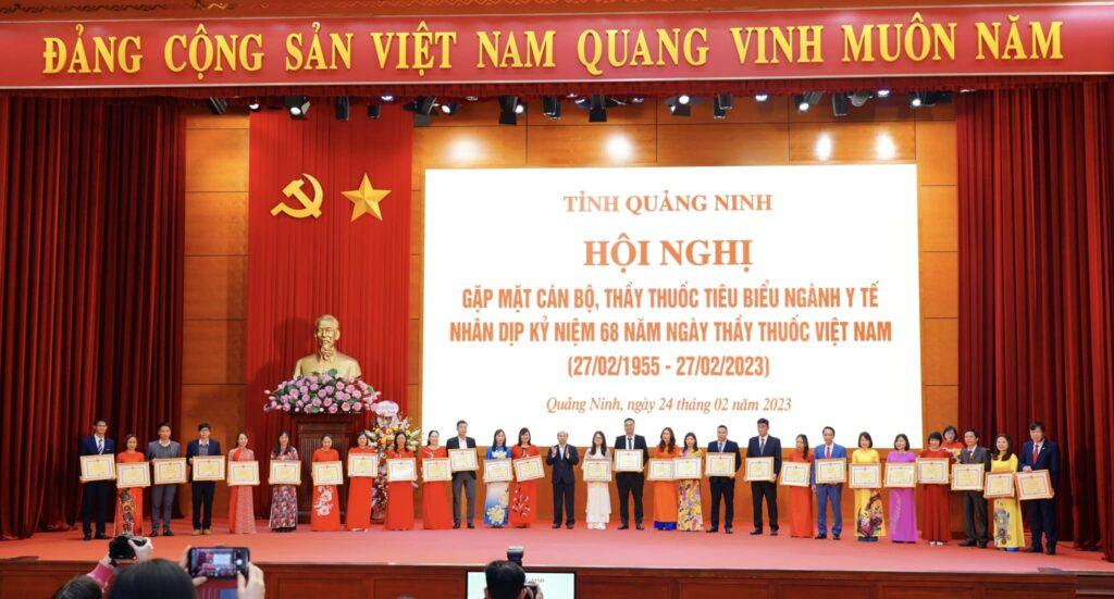 Chiều ngày 24/2, Tỉnh ủy Quảng Ninh đã tổ chức gặp mặt cán bộ, thầy thuốc tiêu biểu nhân kỉ niệm 68 năm ngày Thầy thuốc Việt Nam (27/2/1955 – 27/2/2023) nhằm tôn vinh, tri ân những đóng góp của đội ngũ cán bộ, nhân viên y tế trong sự nghiệp chăm sóc và bảo vệ sức khoẻ nhân dân