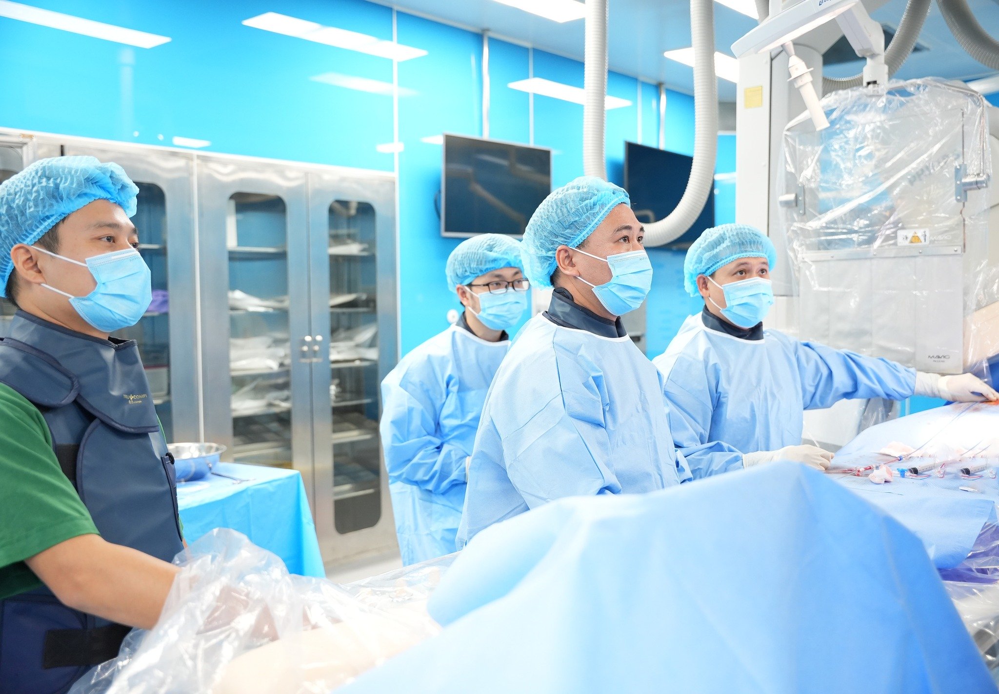 Kíp can thiệp gồm BSCKII. Phí Xuân Thi- Trưởng phòng KHTH, BSCKI. Trần Văn Thiệp, BSNT. Nông Văn Mạnh- Khoa HH-TM-TH-TK; các bác sĩ, kỹ thuật viên khoa Gây mê hồi tỉnh, HH-TM-TH-TK, Chẩn đoán hình ảnh.Sau can thiệp, hiện sức khoẻ cả ba trẻ ổn định và đã được xuất viện.