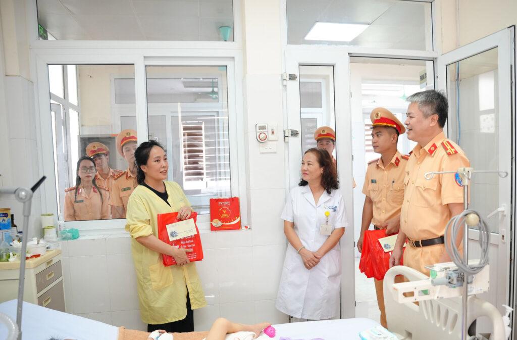 Cũng nhân dịp này, đoàn các cán bộ Phòng cảnh sát giao thông – Công an tỉnh Quảng Ninh, các nhà hảo tâm cũng đã đến thăm hỏi, động viên, trao tặng 340 suất quà cho các cháu Bệnh nhân nặng, bệnh nhân khó khăn và bệnh nhi đang điều trị tại bệnh viện.